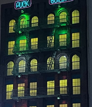 Handcrafted models and paintings of iconic buildings.